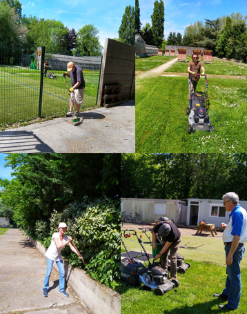 🌱 tonte de la pelouse, 🌼 désherbage, 🧽 nettoyage des ALGECO, 🎯 remplacement des cibles abîmées… Rien ne leur échappe !
